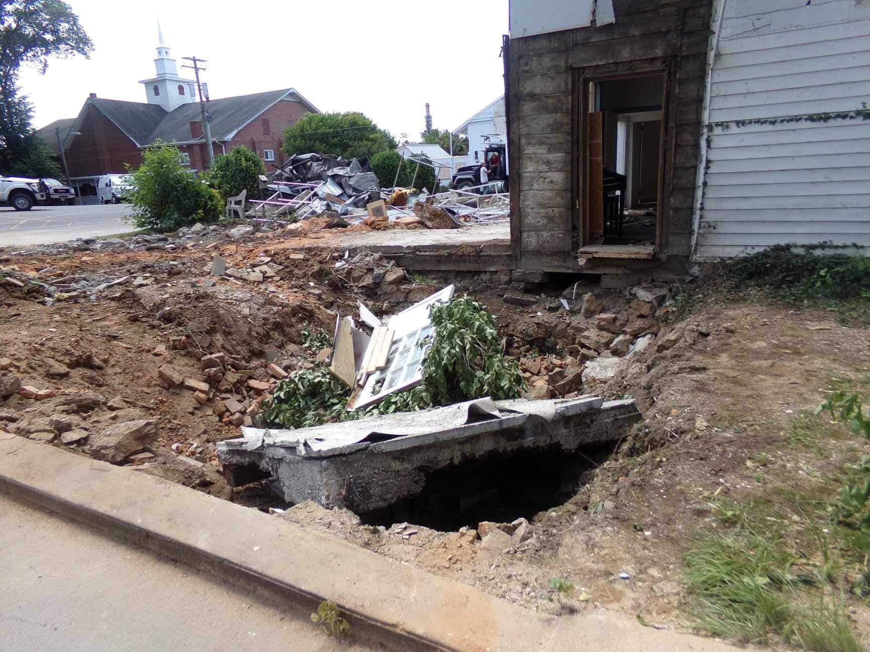 Inexplicably, in 2018, the church decided the historic home with its lovely hedge and witness tree had no value, and a larger parking lot was more beneficial. Regardless that a curbside historic placard identified the house as an important historic structure, the town of Williamsport rubber-stamped an approval for demolition. There was no public notice, no opportunity for public input, and no advance warning in the summer of 2018 when a demolition crew arrived with the backhoes. The neighborhood watched in shock and anger as the crew demolished one of Williamsport's treasures into rubble, burying its historic timbers into its foundation.
